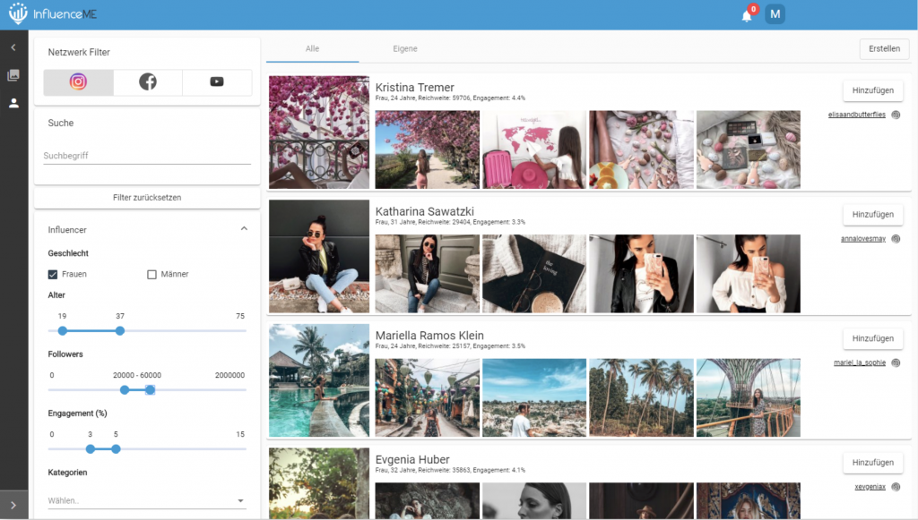 - Wir finden die Influencer, die perfekt zu Ihrer Marke passen, und führen gemeinsam mit Ihnen die Auswahl durch.