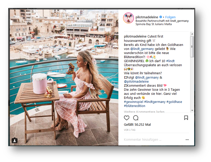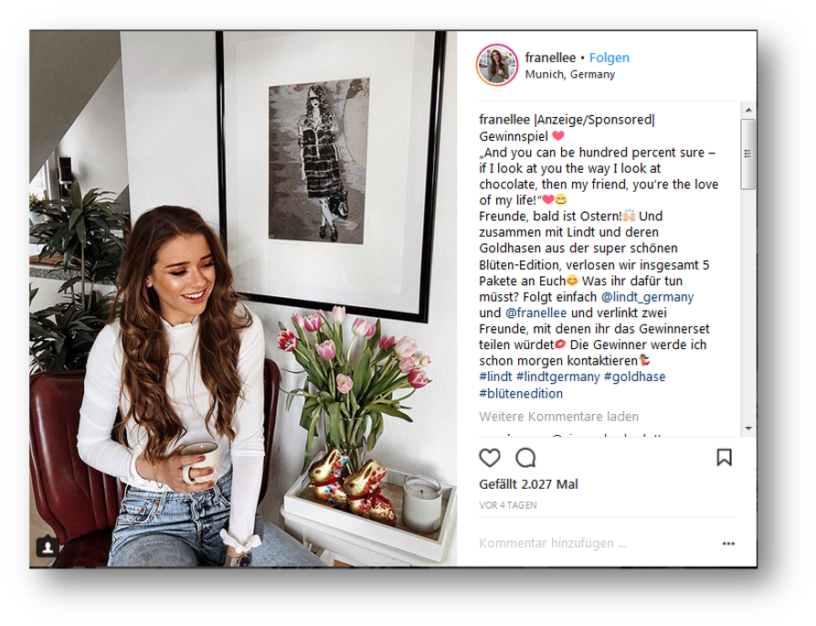 Ostern ist durchwegs positive belegt und eine schöne Ablenkung zur aktuellen Situation. Zeit für Geschenke, Zeit für Genuss, Zeit um es sich gut gehen zu lassen. Ob Dekoration, Wellness in den eigenen vier Wänden, Leckereien für den Gaumen. Unsere Influencer helfen, ihr Produkt in Szene zusetzen und generieren Traffic für Ihre Onlinesaleskanäle, zudem können mit einem eingebundenen Gewinnspiel Fans für Instagram und Facebook gewonnen werden.