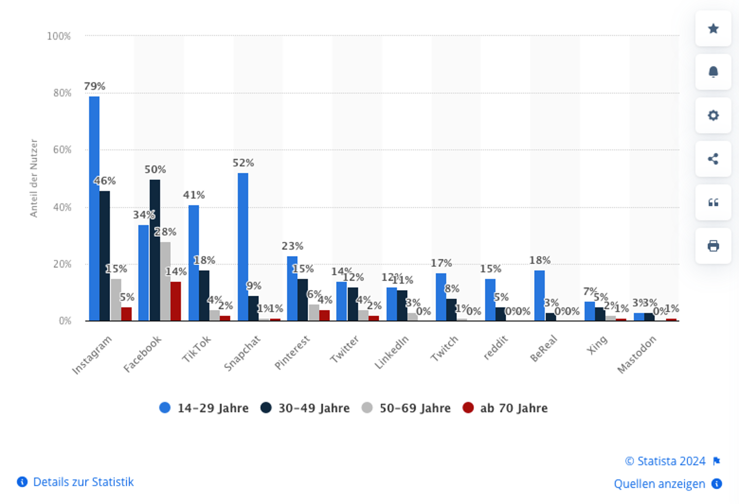in der Altersgruppe der 14- bis 29-Jährigen ist Instagram das meist genutzte soziale Netzwerk in Deutschland – das zeigt eine Studie, die ARD und ZDF gemeinsam in Auftrag gegeben habe. 79 Prozent der Befragten dieser Altersgruppe öffnen die App, welche zu Meta gehört, mindestens wöchentlich. Facebook dagegen wird von nur 34 Prozent dieser Altersgruppe mindestens wöchentlich verwendet.