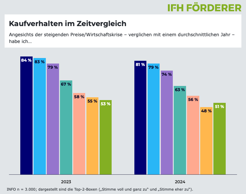 eine deutliche Zunahme emotionaler Spontankäufe belegt die IFH Schwerpunktstudie 2024. Das Umsatzvolumen ist auf 204 Mrd. Euro gestiegen – ein Plus von 23 Mrd. Euro im Vergleich zu 2023. Der Anteil emotionaler Käufer liegt nun bei 35 %, während der Anteil rationaler Käufer weiter sinkt. Zudem achten immer weniger Konsumenten auf günstige Angebote (2024: 79 %; 2023: 83 %). Für den Handel werden neben digitalen Services und Nachhaltigkeit vor allem attraktive Einkaufserlebnisse zum entscheidenden Wettbewerbsvorteil.